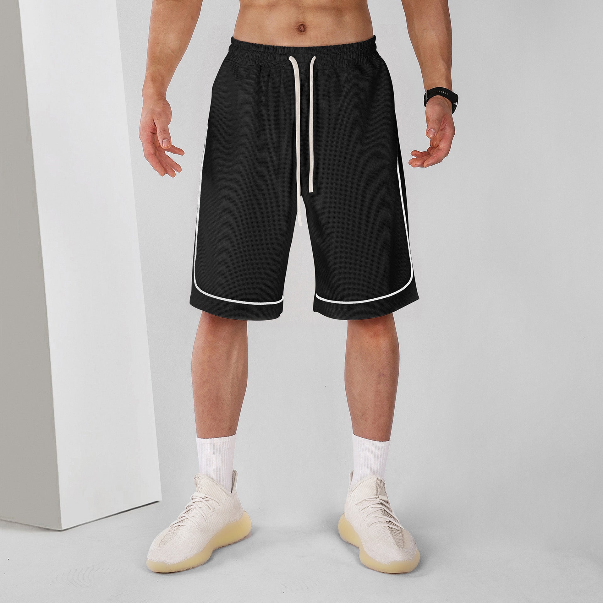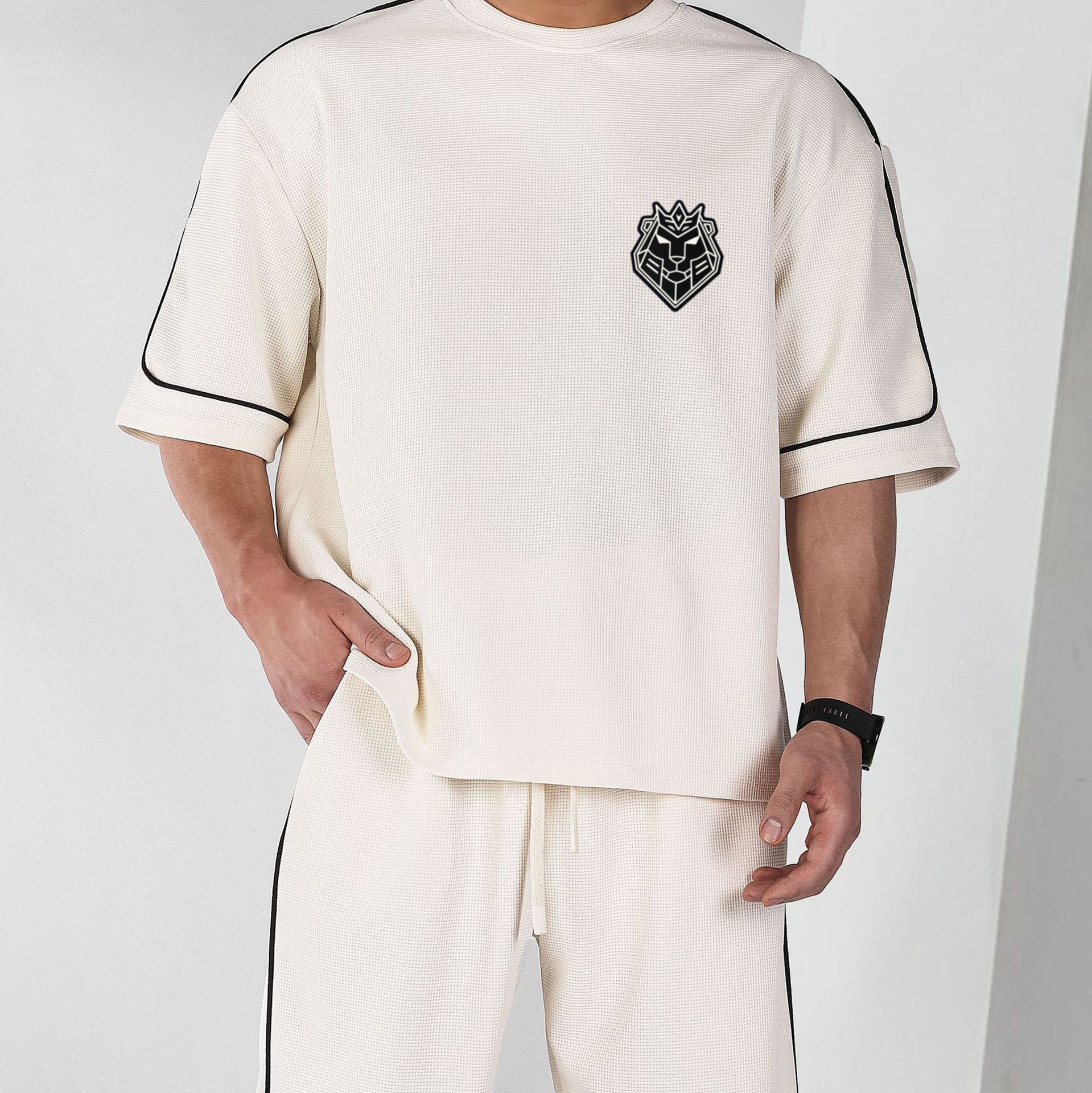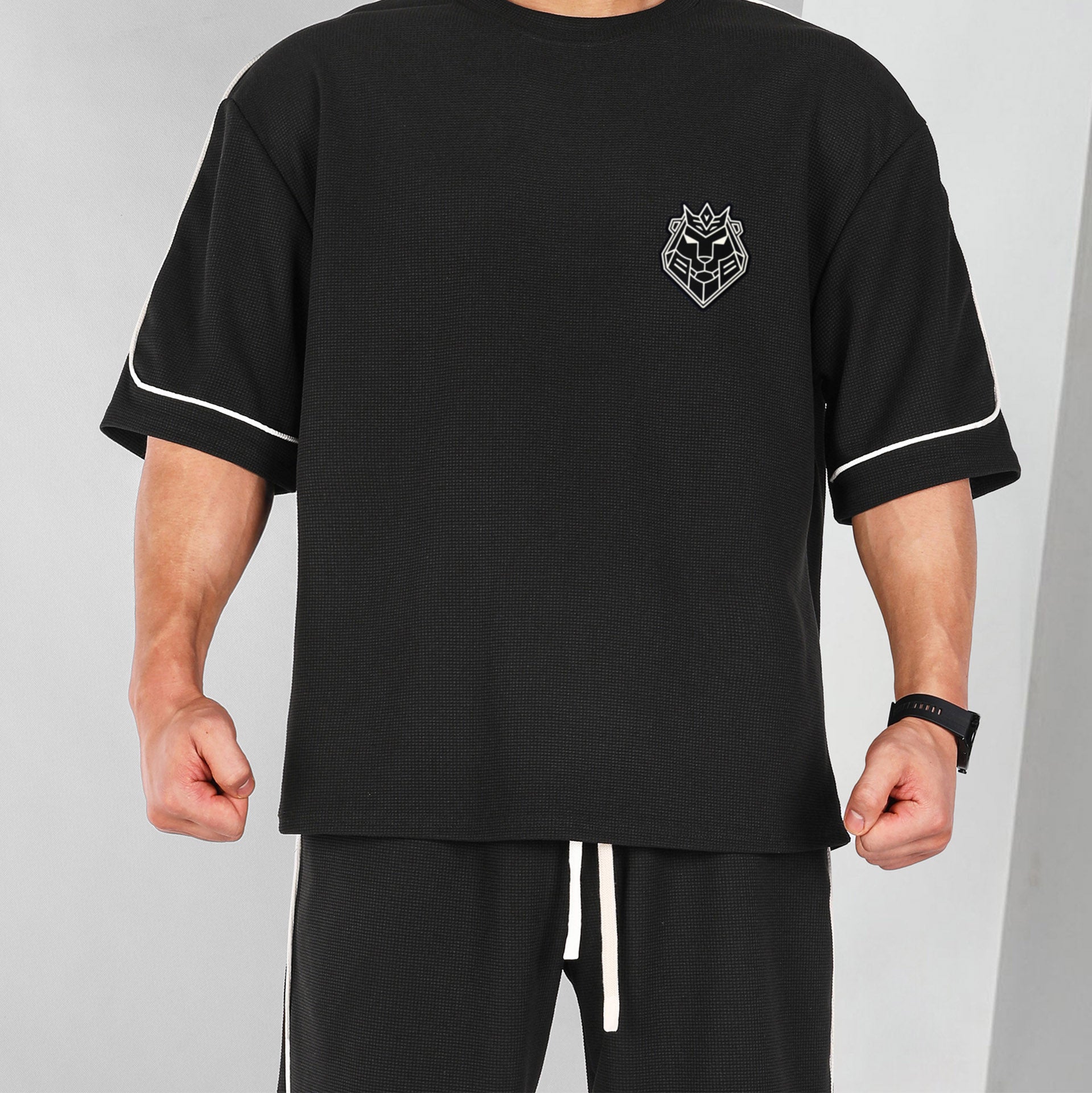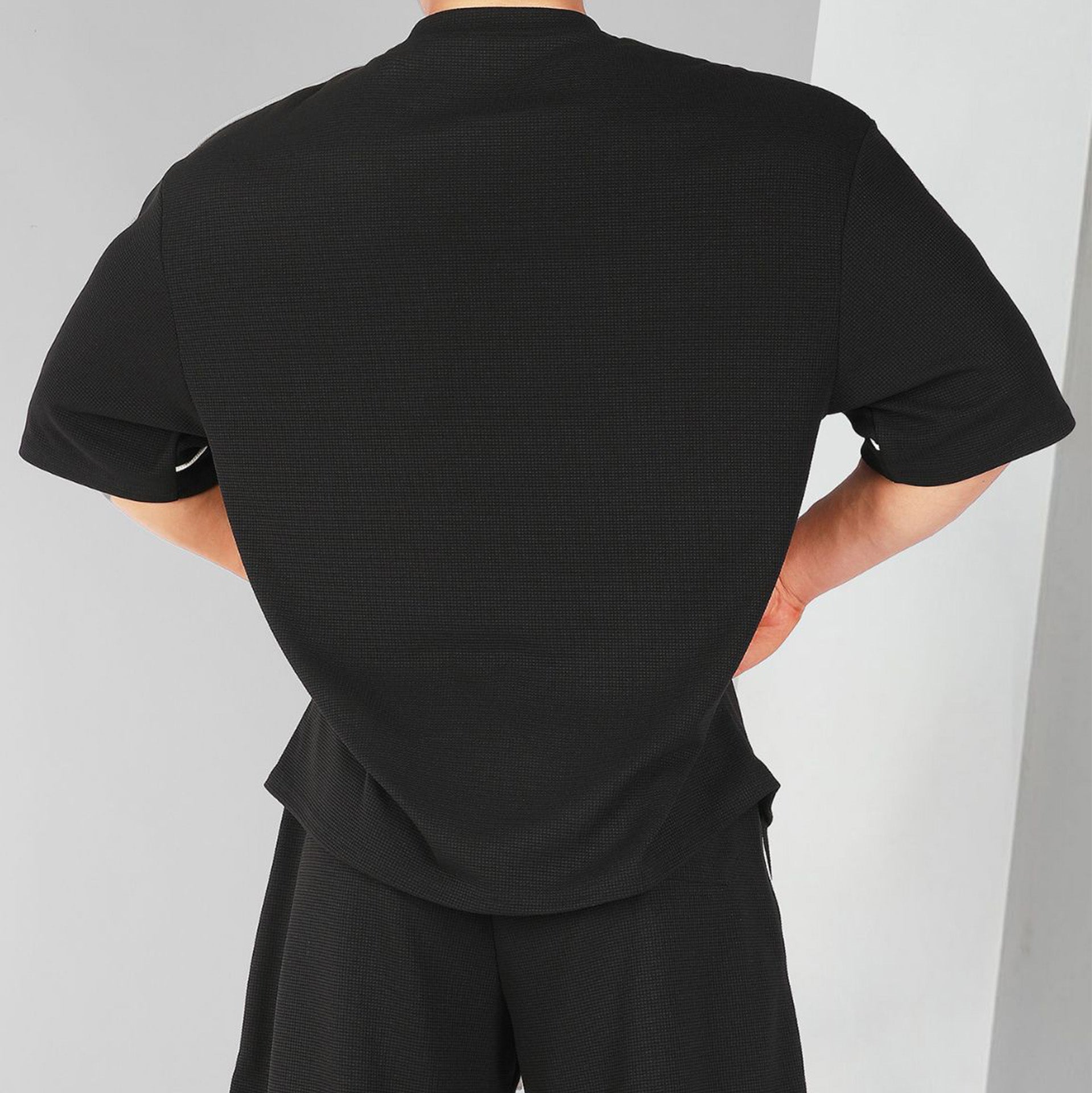 Solid Color Fitness Sports Contrast Edge Oversize Non Printed Knitted Short Sleeve Set for Men's Casual Outdoor Summer Home Furnishing Colored New Style